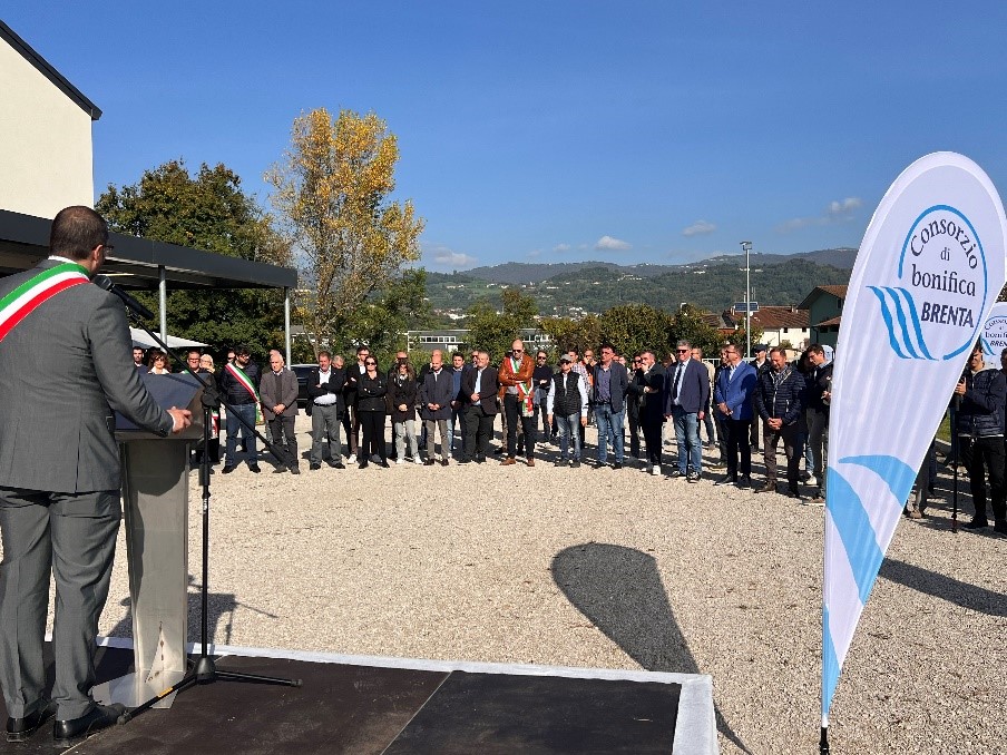 Erano presenti numerose autorità, istituzioni, rappresentanti del mondo agricolo e utenti. Il saluto è stato portato dal sindaco di Colceresa, Enrico Costa, come padrone di casa; il direttore del Consorzio, Umberto Niceforo, ha descritto tecnicamente la nuova opera e il presidente del Consorzio, Enzo Sonza, ha svolto un intervento istituzionale e di prospettiva; il presidente dell’Anbi Veneto, Francesco Cazzaro, ha rinsaldato i concetti espressi dai nostri rappresentanti; Roberto Ciambetti, presidente del Consiglio Regionale del Veneto, dopo aver letto una lettera appositamente spedita dal presidente della Giunta Regionale, Luca Zaia – che, non potendo essere presente, ci ha tenuto ad esprimere il proprio elogio e la propria vicinanza al Consorzio – ha ribadito la validità dell’opera oggetto di inaugurazione e più in generale dell’attività che il Consorzio svolge a favore del territorio, sia nella quotidianità, sia con importanti progetti, compresi quelli che vanno nella direzione di tesaurizzare la risorsa idrica con idonei invasi, quali quelli di Meda e del Vanoi; la senatrice Mara Bizzotto si è unita nel valorizzare la bontà dell’intervento e del compito del Consorzio; infine Francesca Coniglio, dirigente del Ministero dell’Agricoltura, ente finanziatore dell’impianto, ha avuto parole di soddisfazione dell’opera portata a compimento e per la capacità operativa del mondo della bonifica e in particolare del Consorzio Brenta.