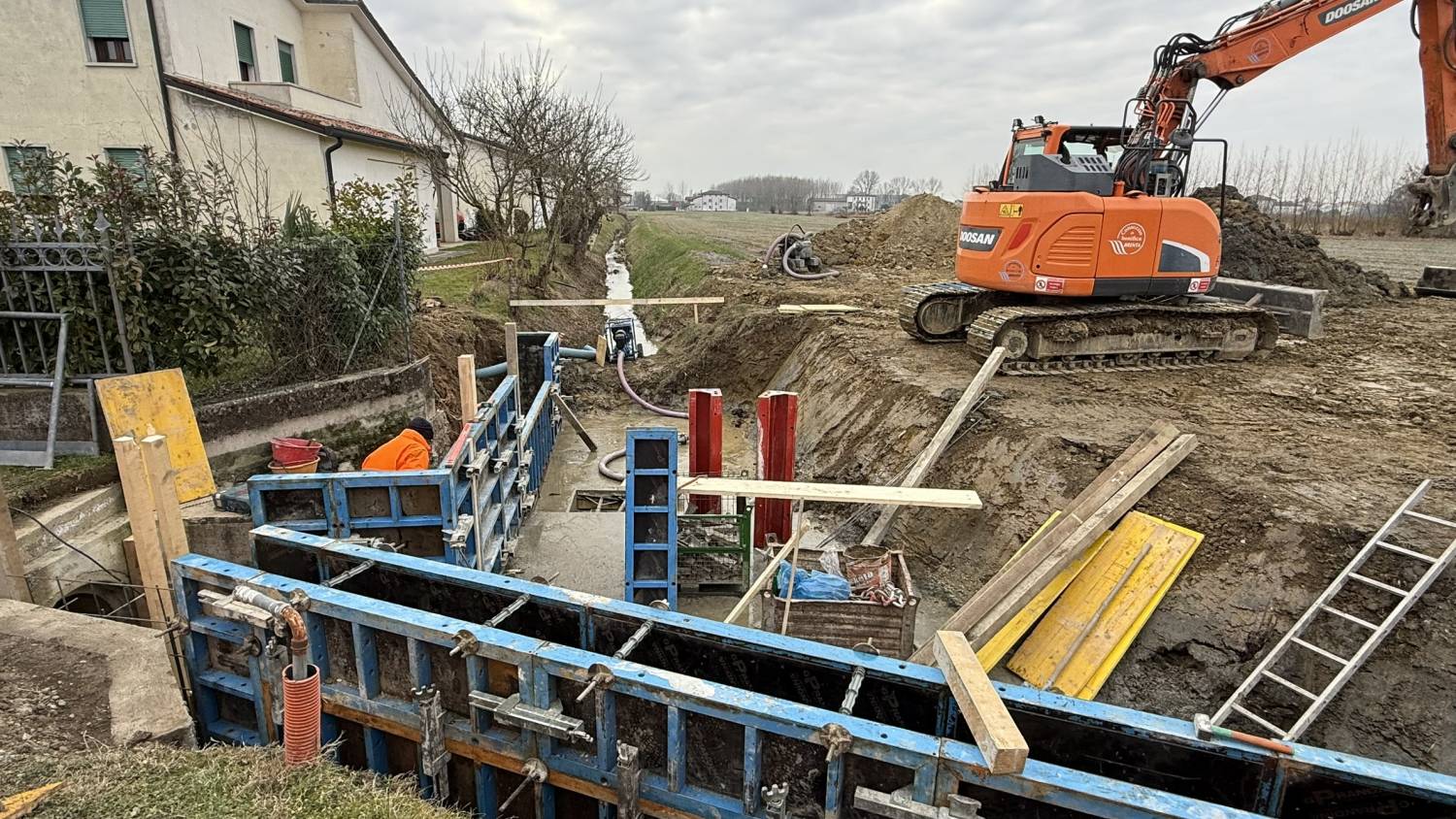 È anche in corso d’opera il ripristino della funzionalità idraulica dell'Investita Trieste nello scolo Orcone in via Gomiero in comune di Piazzola sul Brenta.