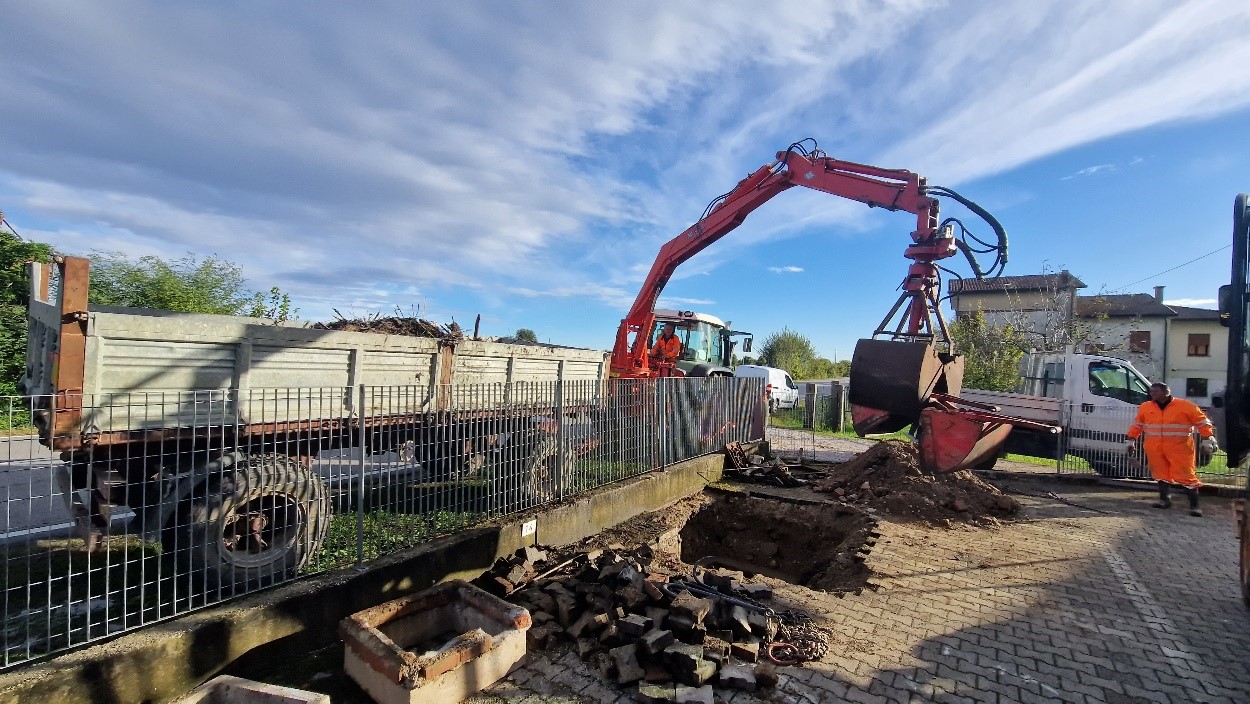La prima fase dell’evento (tra il 30 e il 31 ottobre) ci ha visti particolarmente impegnati tra Marostica e Pianezze, dove una tombinatura realizzata a seguito del disordinato sviluppo del territorio si è intasata con ramaglie, detriti e materiali vari, convogliati da un canale del territorio. Ciò ha creato un pericoloso rialzo del livello dell’acqua a monte e una situazione di incipiente esondazione. Il tempestivo intervento del Consorzio, affiancato dalla Protezione Civile locale e anche dai Vigili del Fuoco per il pompaggio, ha richiesto varie ore di lavoro anche di notte, in condizioni difficili, ma è stata positivamente risolta andando a demolire una parte del piazzale ove è collocato il tubo e demolendo anche la parte superiore di esso, da cui con apposito mezzo operativo è stato estratto il materiale depositato liberando il passaggio all’acqua.