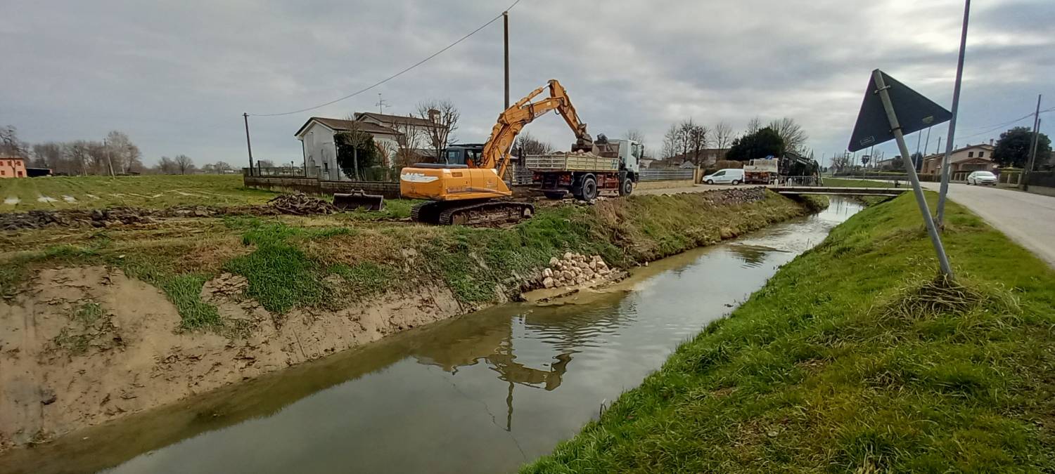 Sono iniziati nel mese di febbraio alcuni interventi di risagomatura e di difesa spondale nello scolo Liminella Vicentina nel territorio comunale di Villafranca Padovana.