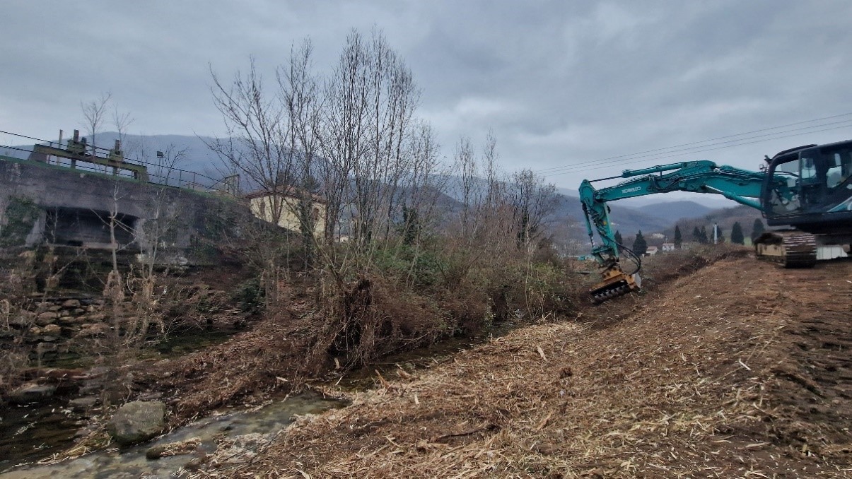 I lavori sono proseguiti poi con la regolarizzazione del fondo, e il rinforzo con materiale presente in loco delle traverse idrauliche presenti nel corso d’acqua, atte a dissipare l’energia delle acque in eccesso per evitare pericolose erosioni.