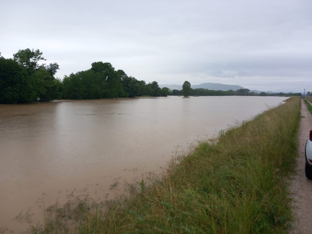 L’evento di mercoledì 15 maggio, pur intenso, non aveva creato particolari problemi nel nostro comprensorio, visto anche che i terreni drenavano. I livelli dei canali si erano mantenuti sotto controllo, sono entrate in funzione le casse di espansione del Consorzio (poi subito svuotate) e si è registrato qualche attacco delle idrovore a fine giornata.