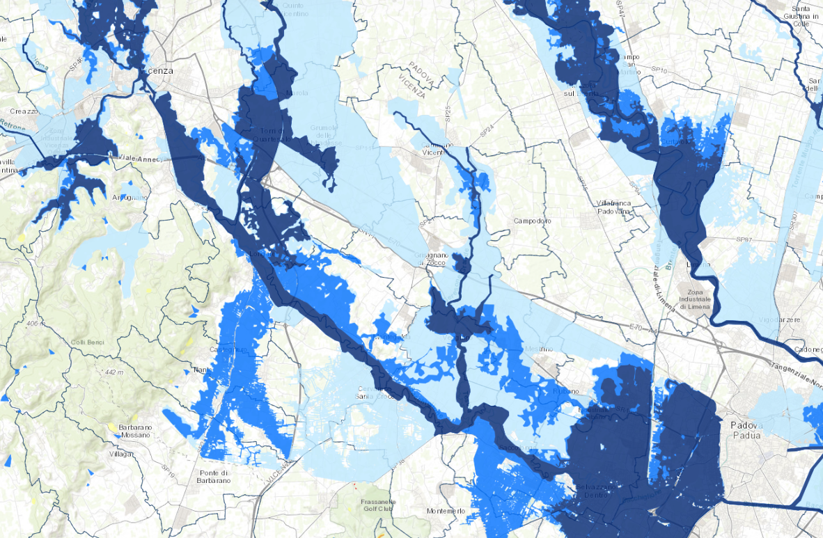 Il territorio coinvolto da questo avvenimento è un territorio fragile, con ampie superfici classificate a rischio elevato da ISPRA sulla base dei dati dell’Autorità di bacino Distrettuali delle Alpi Orientali. Il Comune di Rubano, ad esempio, ha più di 2.800 famiglie che vivono in aree con rischio alluvioni elevato, nonché quasi 800 imprese sono insediate in queste aree (fonte ISPRA, piattaforma italiana sul dissesto idrogeologico).
